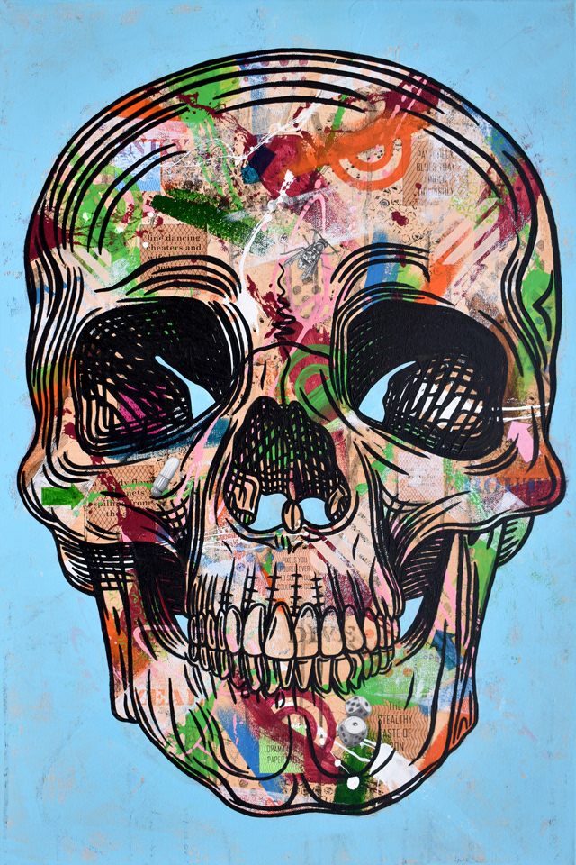 Memento Mori (Part 2) (Acrylic paint, pencil and collage on canvas, 24" x 36")