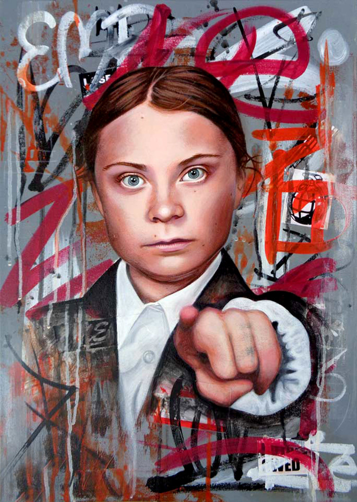 Greta (Acrylic paint and collage on canvas)